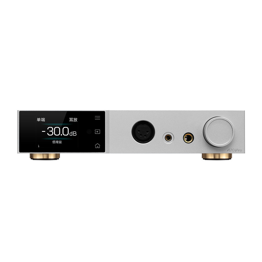 Amplificatorul și preamplificatorul de căști Topping A70 Pro, complet simetrice, utilizează cea mai recentă tehnologie Tanggula a producătorului, care reduce în mod eficient zgomotul de circuit și distorsiunea de înaltă frecvență, mărind și mai mult gama dinamică la un nou nivel de 147 dB. Panoul frontal dispune de ieșiri XLR cu 4 pini, Pentaconn de 4,4 mm și căști de 6,35 mm, iar un adaptor de conversie de la 3,5 mm la 6,35 mm este inclus. A70 Pro este un companion demn de urmat pentru D70 Pro SABRE, care au fost dezvoltate în același timp, deoarece împreună pot satisface aproape orice cerințe, fie că este vorba de ascultarea muzicii cu căști sau cu difuzoare. Cu aceste două produse, Topping introduce pentru prima dată afișajul full color de 2" și sistemul Aurora UI, făcând controlul muzicii mai rapid și mult mai eficient. Pachetul include, de asemenea, o telecomandă.